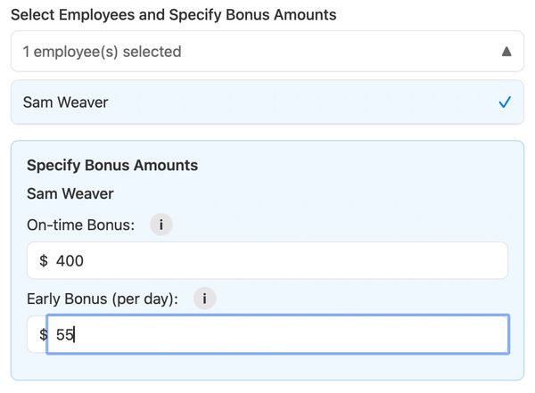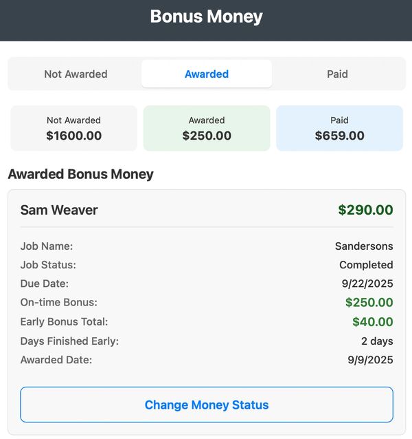 Both the managers and the employees can see the bonus money offered (not awarded yet), the bonus money awarded, and the bonus money paid.