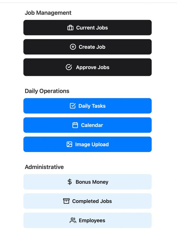 Employees have their own portal where they can see the jobs assigned, bonuses offered, update job progress, see daily tasks and mark them complete, upload images, create job notes and send jobs for approval.